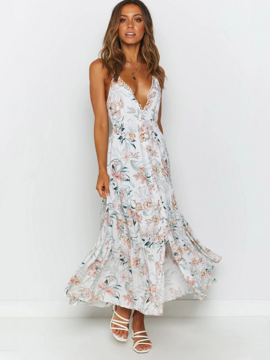 En PromotionRobe Fendue Fleurie Dos Nu